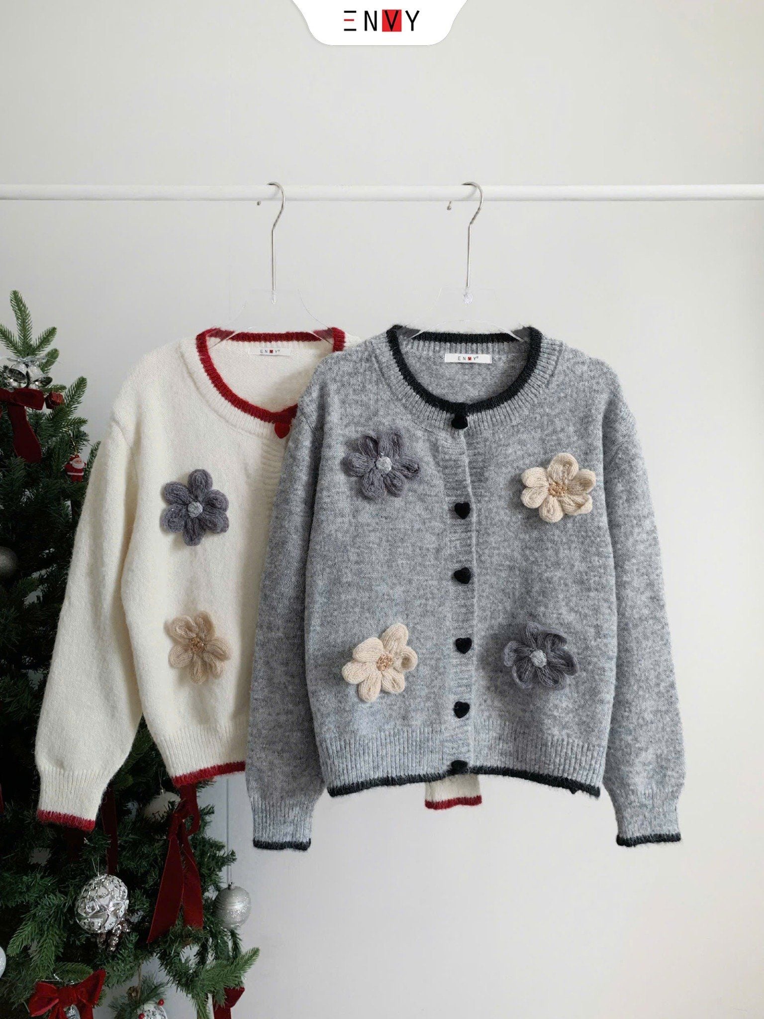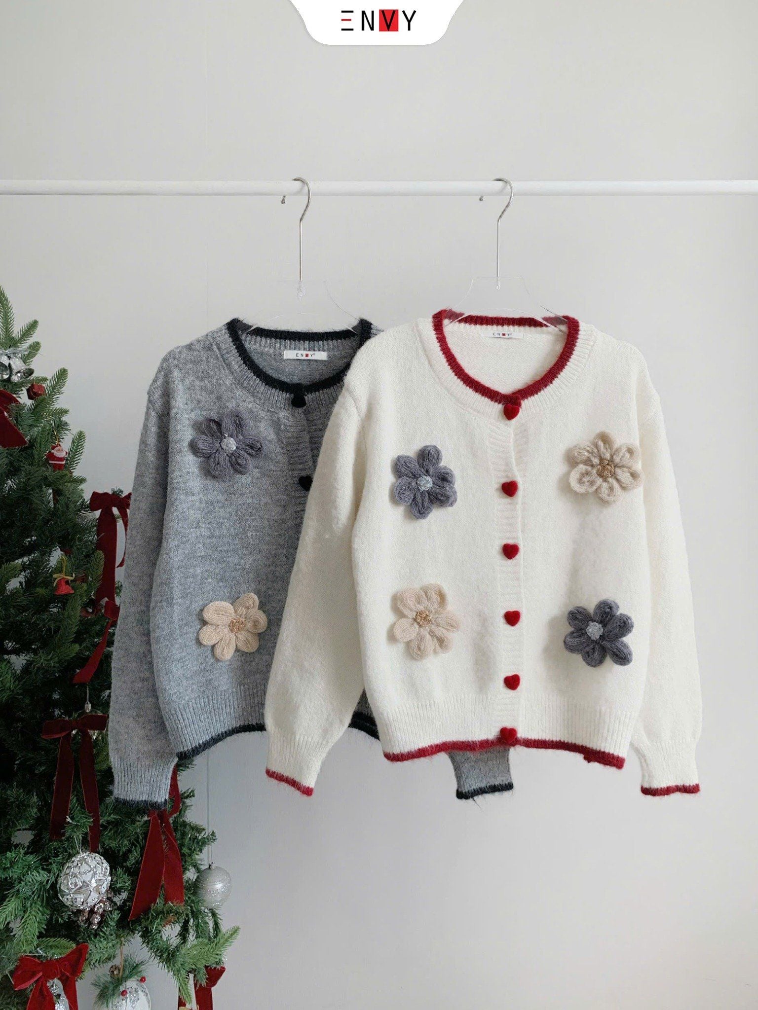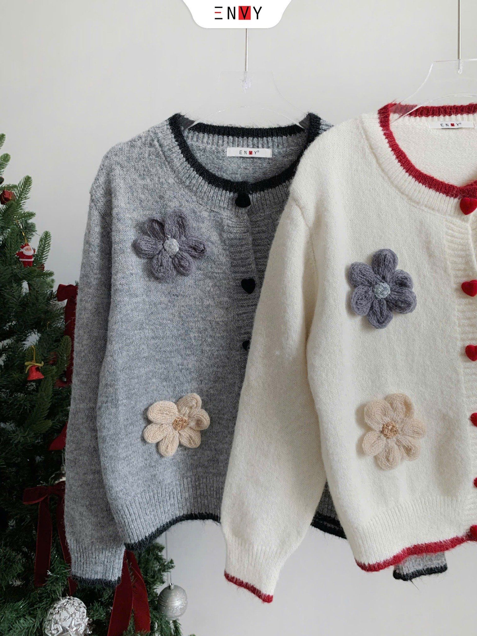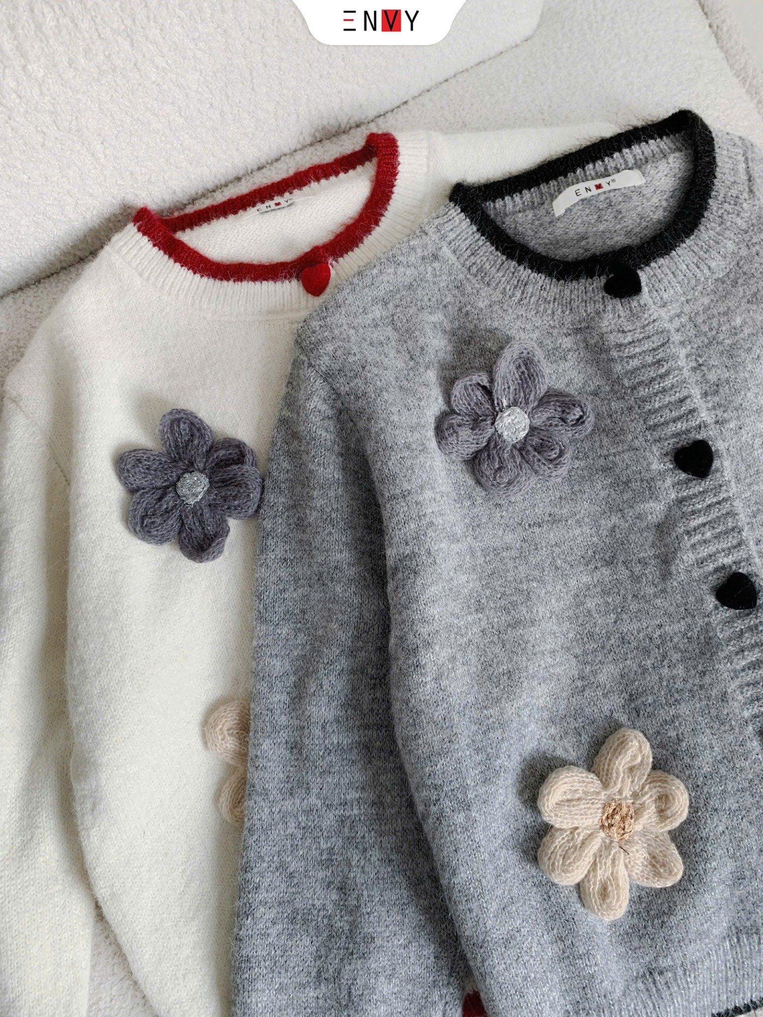 Áo Len Tay Dài Nút Trái Tim