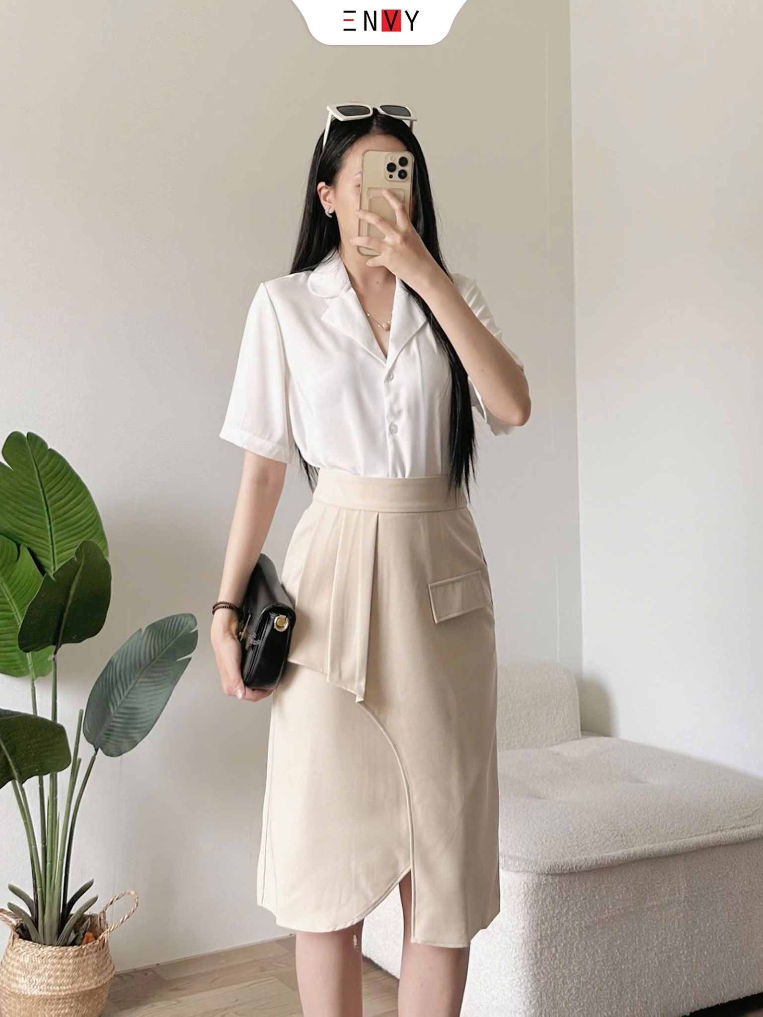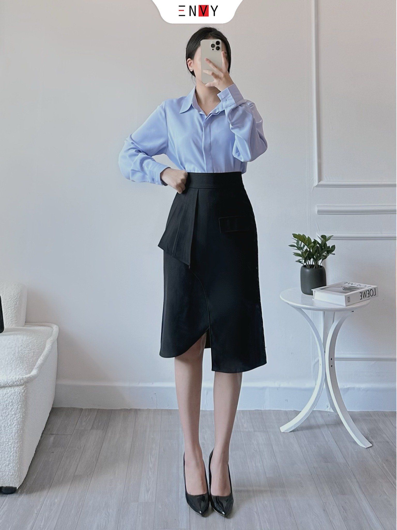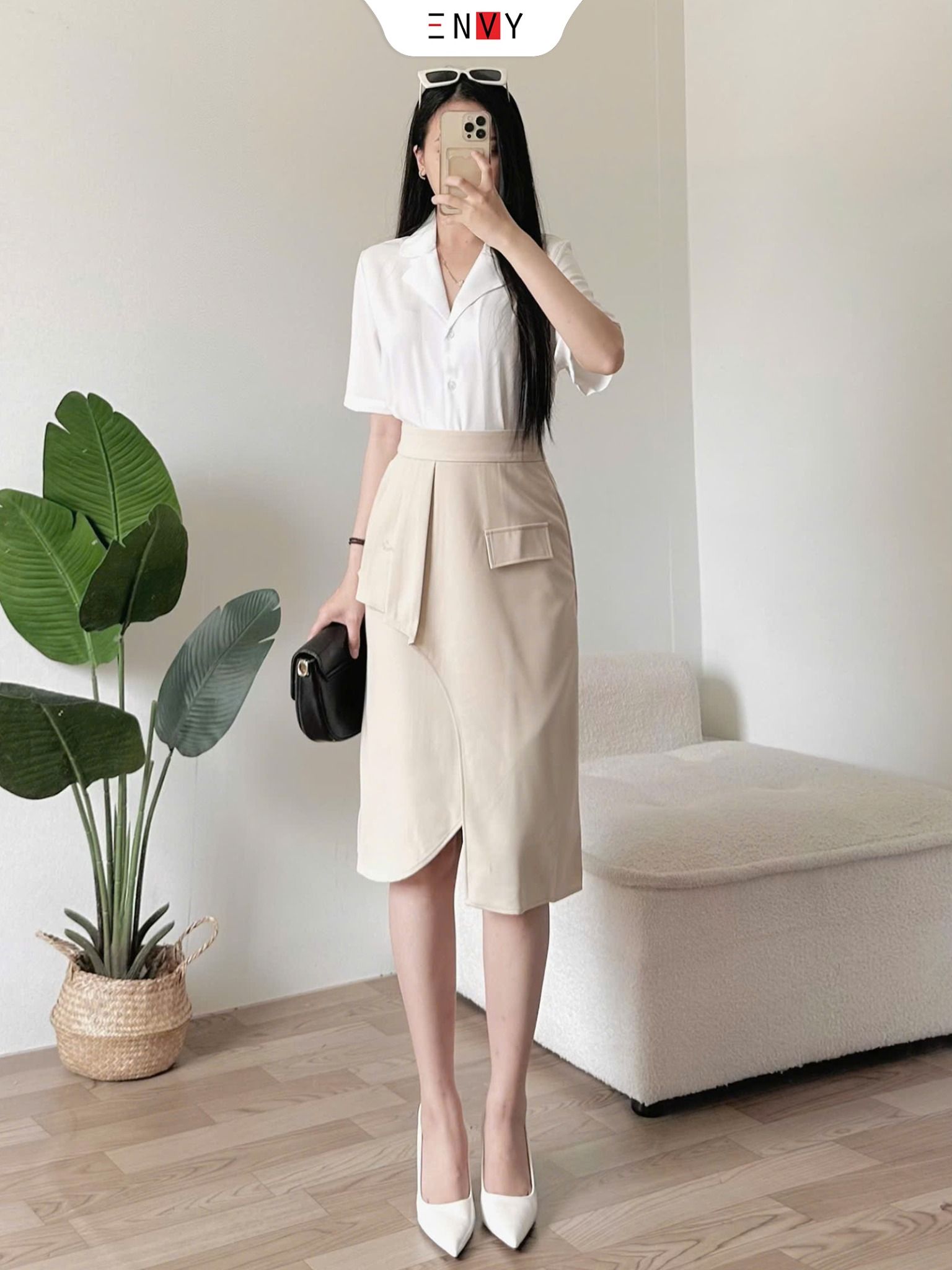 • Ưu điểm sản phẩm: Chân váy xẻ túi kiểu, thanh lịch nổi bật nơi công sở