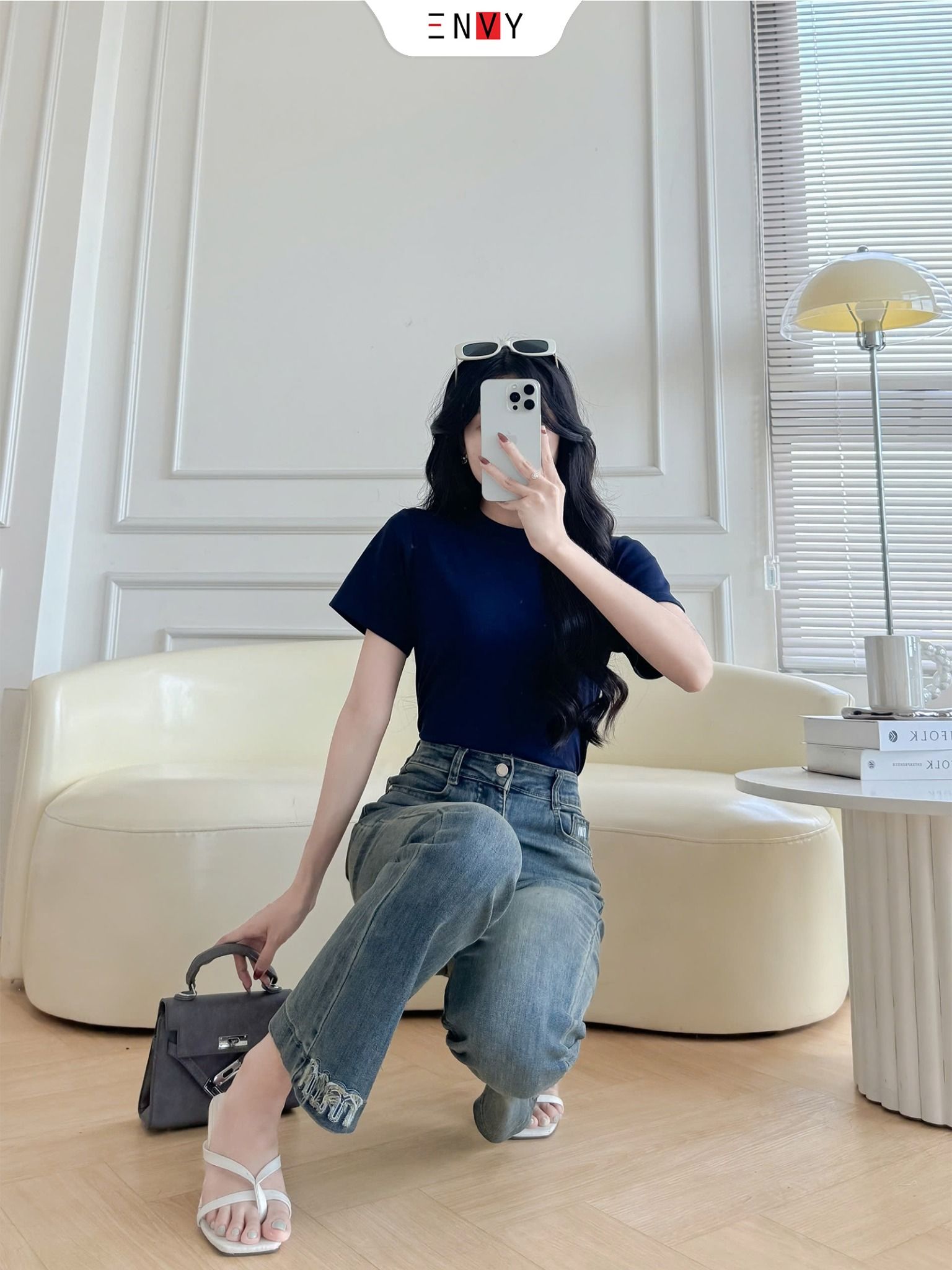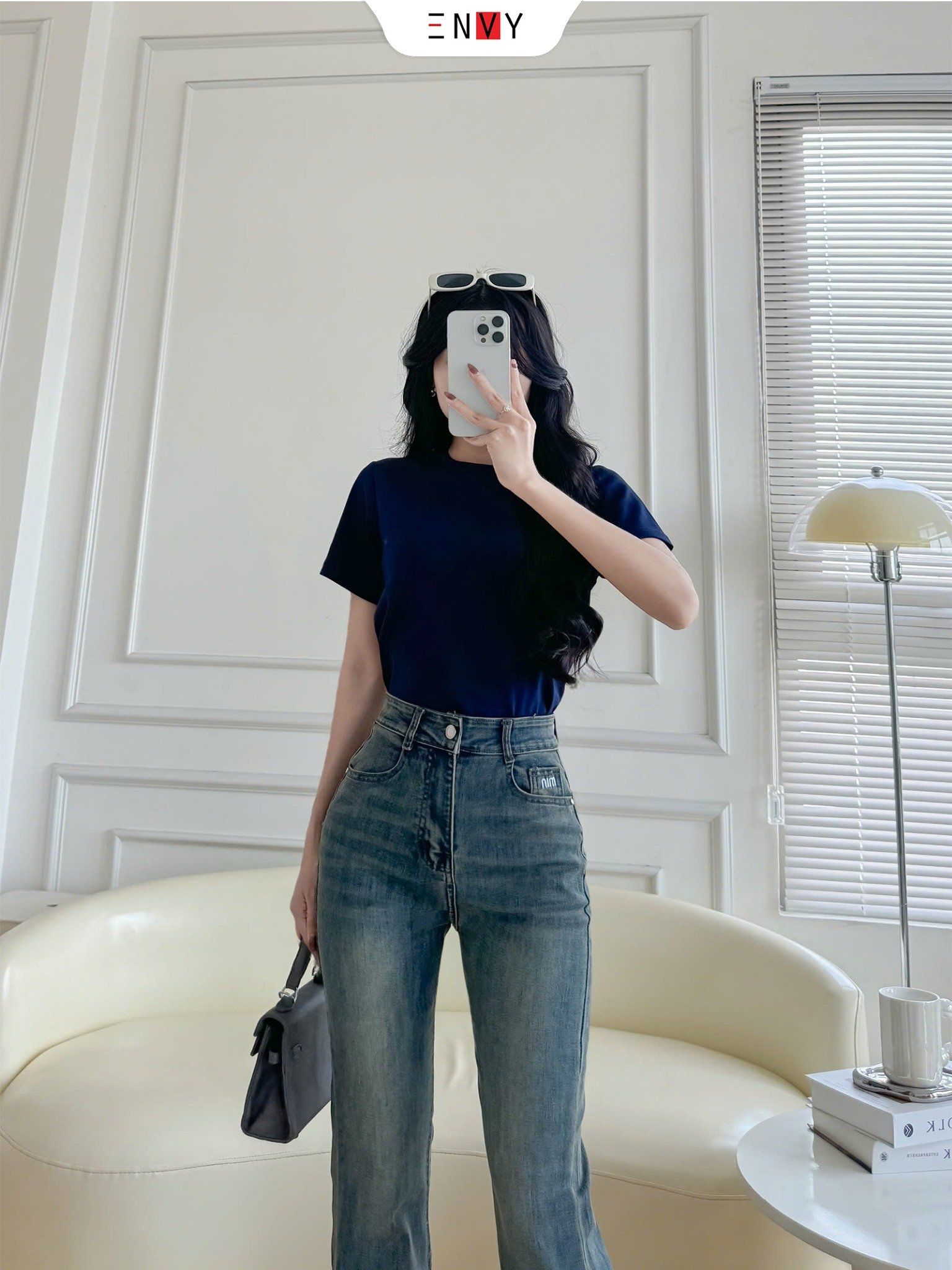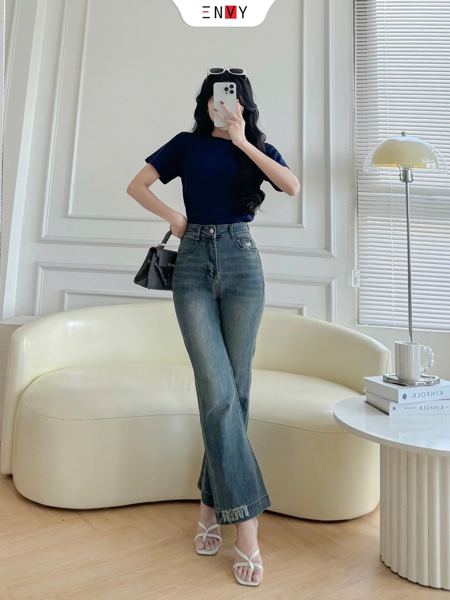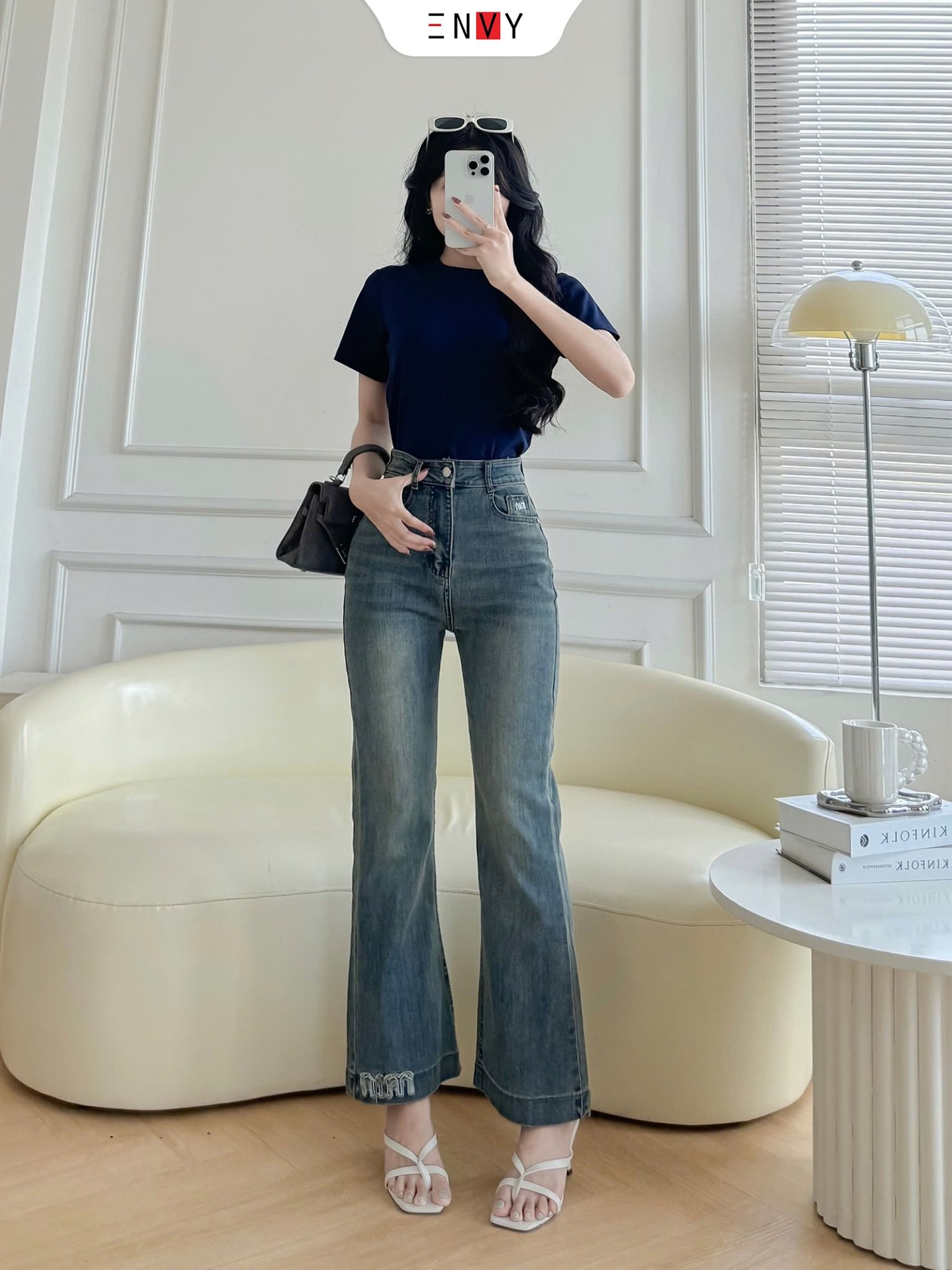 - Size L: Eo 66~73cm, Mông ~98cm, Đùi 48~56cm, Ngang loe ống 23.5cm, Dài 95cm