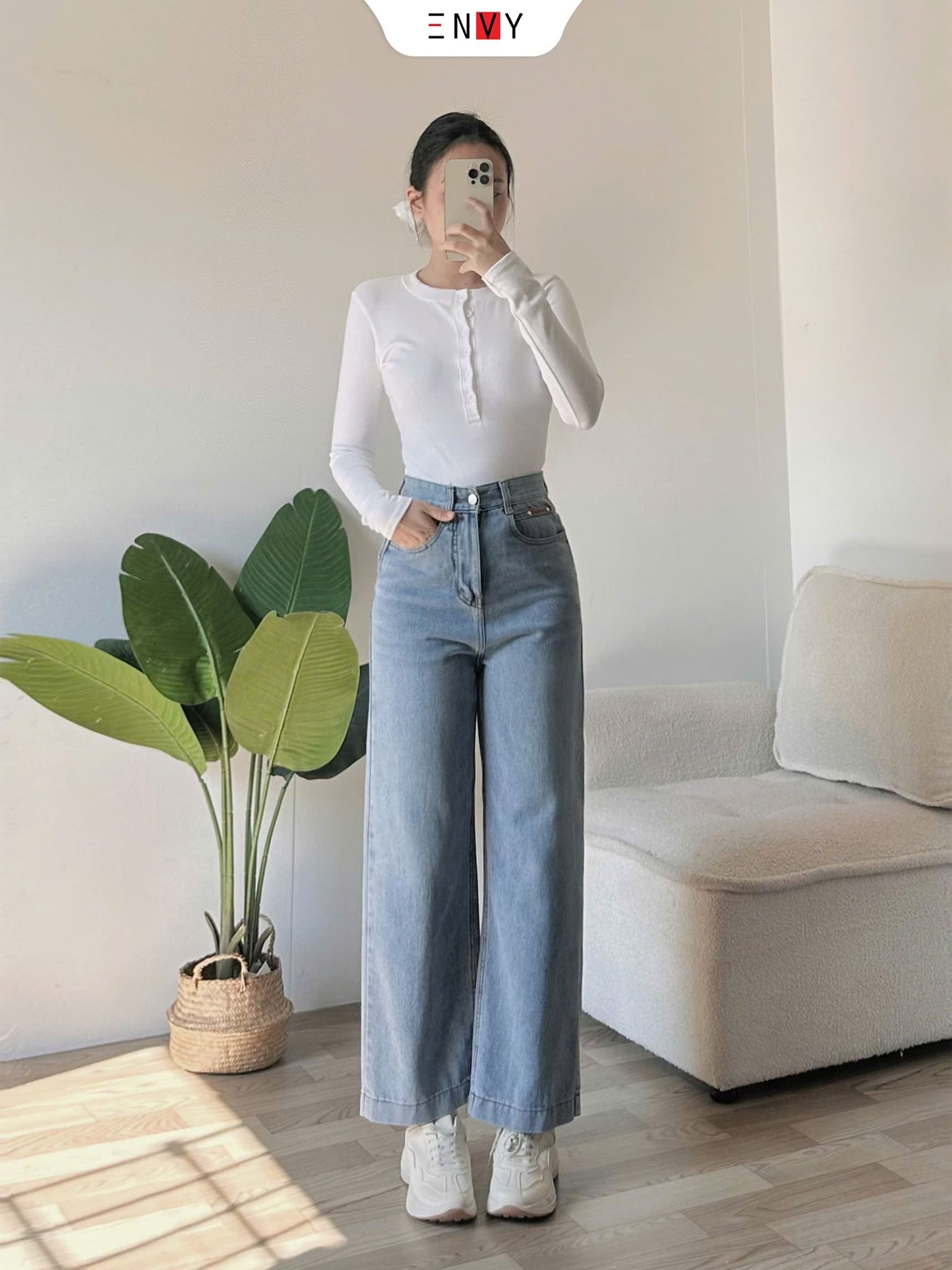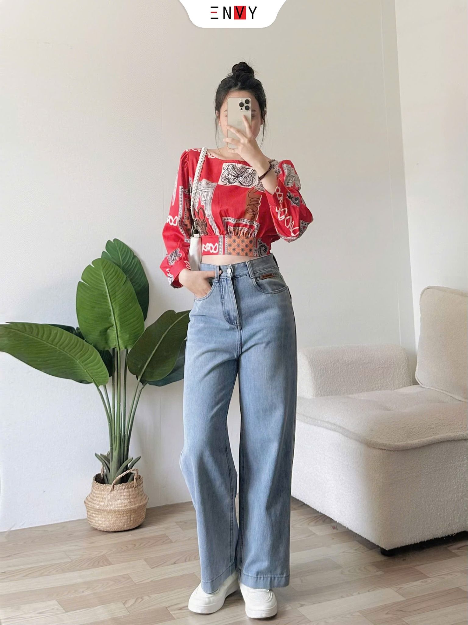 - Size S: Eo 64-67cm, Mông 88cm, Đùi 52cm, Ngang ống 24cm, Dài 93cm