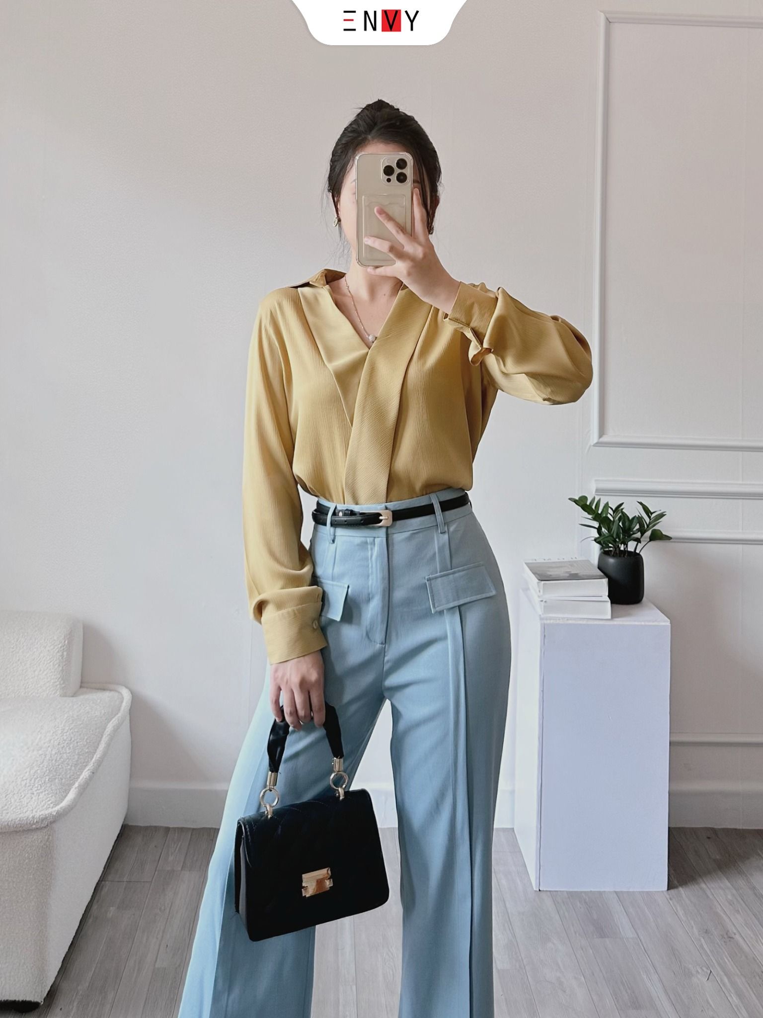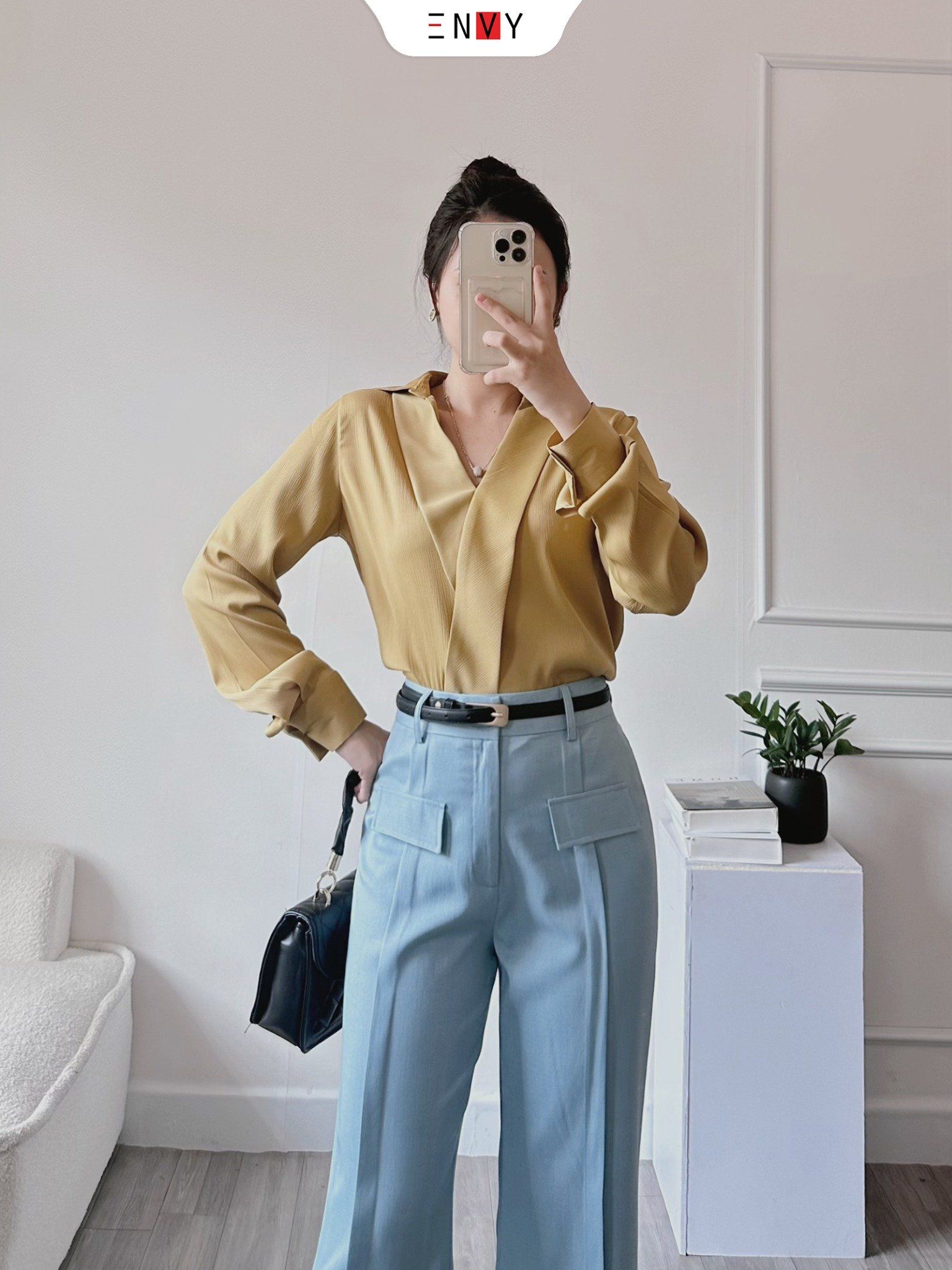 • Ưu điểm sản phẩm: Sơ mi cổ V thiết kế đơn giản sang trọng. Chất vải có độ ánh nhẹ, mềm mướt. Tone màu nhẹ nhàng mặc đi làm đi chơi đi tiệc đều xinh
